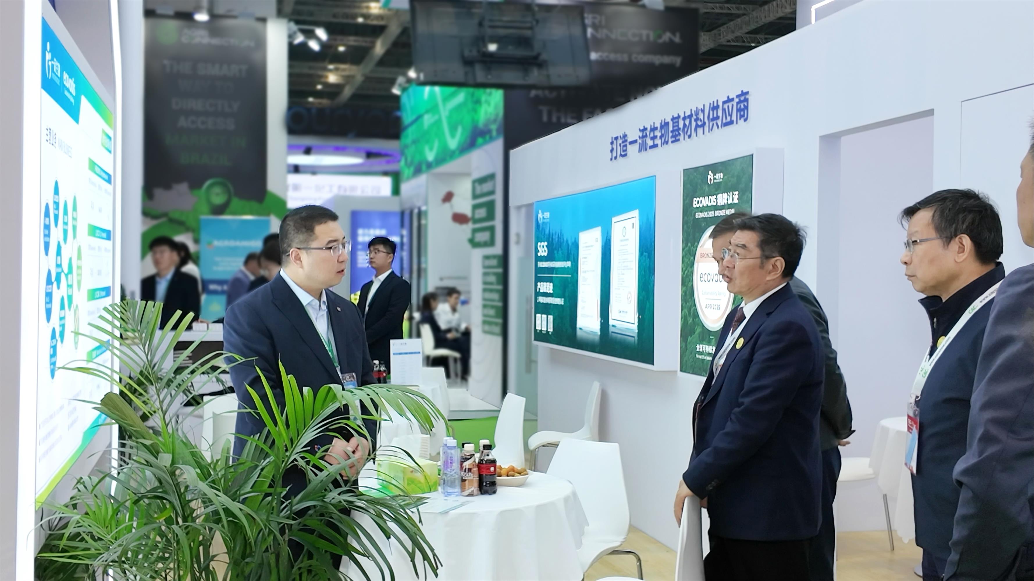 展會(huì)期間,中國(guó)石油和化學(xué)工業(yè)聯(lián)合會(huì)相關(guān)領(lǐng)導(dǎo)蒞臨一諾生物展位參觀指導(dǎo),并就綠色制造、生物基產(chǎn)業(yè)發(fā)展及產(chǎn)品應(yīng)用等話題與公司團(tuán)隊(duì)進(jìn)行了交流。圍繞行業(yè)發(fā)展趨勢(shì)、綠色低碳轉(zhuǎn)型路徑以及生物基產(chǎn)品的產(chǎn)業(yè)化方向,雙方展開(kāi)了深入探討。這也讓我們更加深刻地感受到,綠色低碳與產(chǎn)業(yè)化實(shí)踐正成為行業(yè)持續(xù)關(guān)注的重要議題,而生物基路線在其中的價(jià)值也正在被進(jìn)一步看見(jiàn)。